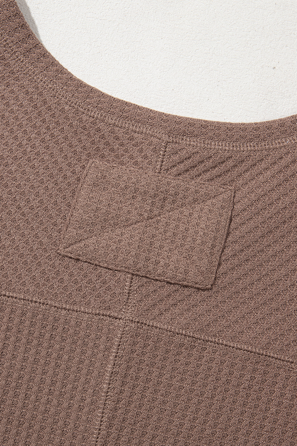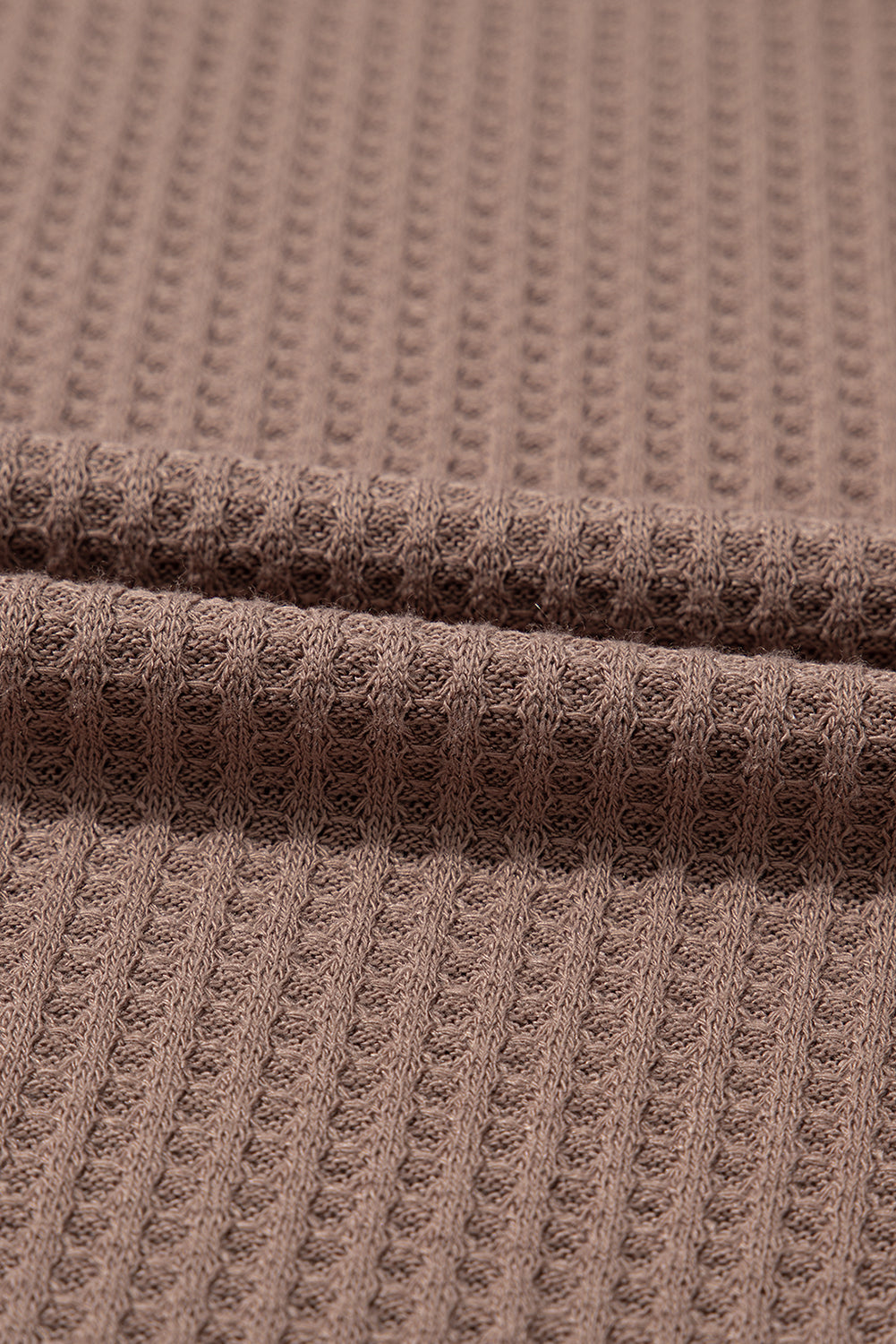 Bright Pink Waffle V Neck Long Sleeve Drop Shoulder Loose Blouse